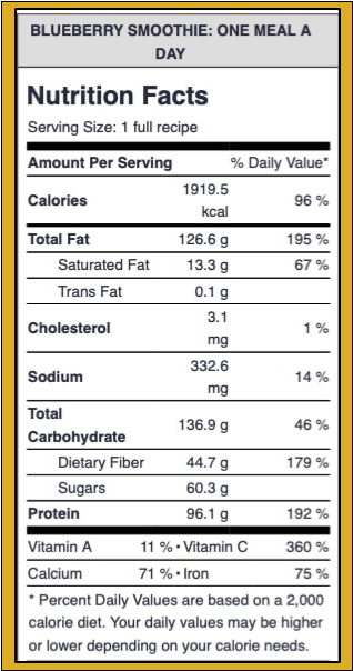 This is a full day’s caloric energy for the average person. I want to be clear, however, that this is not intended to be a meal replacement or something to eat every day. Instead, it is a meal to re-power your metabolism and let your body clear itself of sugars and their downstream by-products.